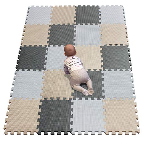 MQIAOHAM pusselmatta för barn, lekmatta, rutor, skum, lekmatta, plattor, babymattor för barn, mjuka lekmattor, flicka, lekmatta, sammankopplade skumgolvmattor för baby, beige CDW110G301025