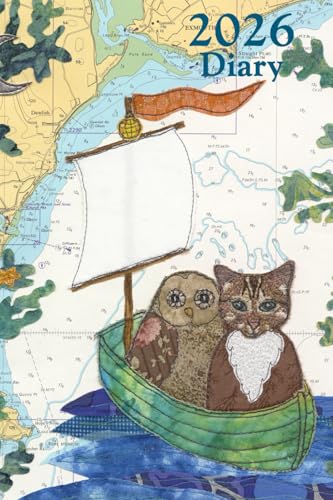 Owl and the Pussycat A6 2026 pocket diary daily planner journal - coastal nautical designs sewn onto old sea charts maps | Week to view