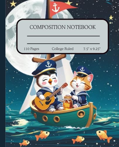 Composition Notebook | 110 pages | College Ruled | 7.5x9.25 inches: Owl and Pussycat Illustration | Cute Folk Tale Aesthetic Journal for School, Work, Life | Gift for Sailors, Girls, Students