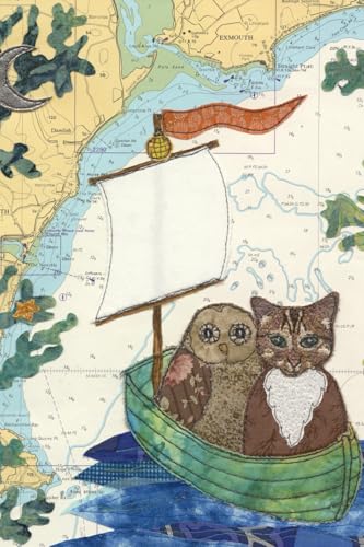 Owl and the Pussycat Devon A6 pocket notebook journal - coastal nautical designs sewn onto old sea charts maps | 120 lined pages