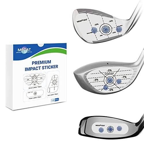MSOAT Högerhänt golfkollisionstejp, 120 st (80 x järn 30 x trä, 10 x putters) självlärande söt fläck och konsekvensanalys, golfklubba ansiktsklistermärken boll träffande inspelare gunga träningshjälp