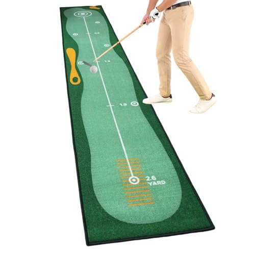 Grön golfträningsmatta – grön golfmästerlighet övningsutrustning – lång puttmatta med avståndsmätare för vuxna, män, kvinnor
