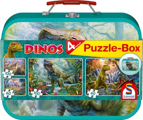 Schmidt CGS_56495 Dinosaurs Puzzle Box (2x60pc/2x100pc), Multicolor