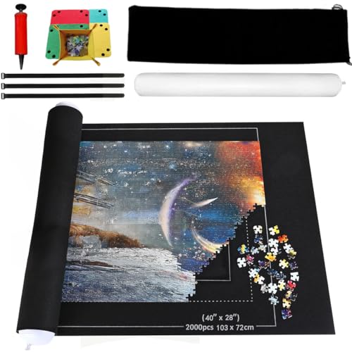 BangShou Pusselmatta för 1000/1500/2000 Bitar, Filt Pusselunderlag med Förvaring, Uppblåsbar Rulle, Pump & Tillbehör, Pussel Förvaring, Pusselrulle, Pusseltillbehör för Barn & Vuxna (Svart 2000)