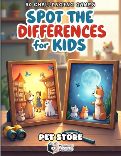 Spot the Differences for Kids – Pet Store Puzzle Book: Find the 5 Differences in Fun Zoo Scenes | 50 Spot the Difference Puzzles for Kids Ages 4-8 | Brain Boosting Activity Book