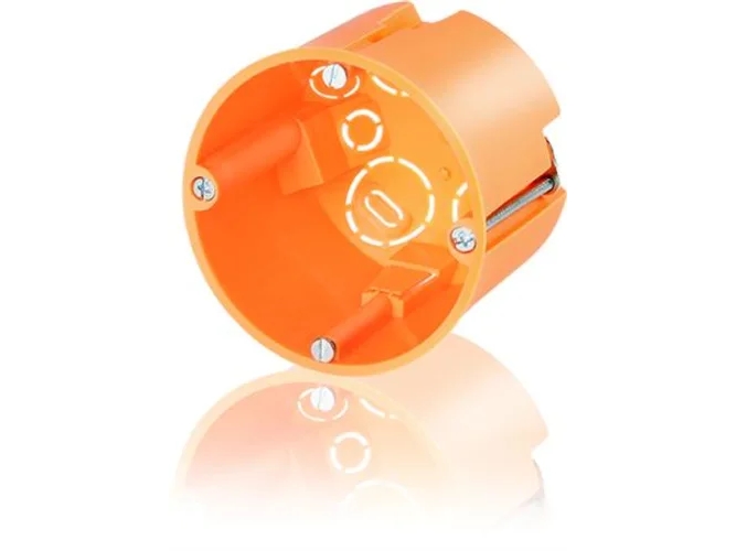 Frontbox 1 Modul Ø68 Mm, Djup 61 Mm, Med Monteringsskruvar. Uttag För Kabel- Och Rörgenomföringar. Orange Eurobox. Pvc-Fri