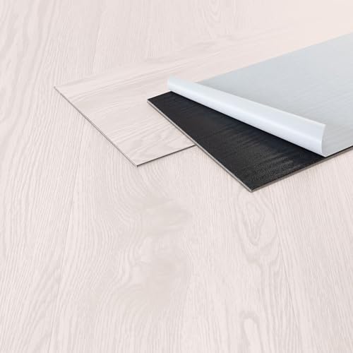 ML-Design Deluxe PVC-golv, självhäftande vinylplankor, vinylgolv, 91,5 cm x 15,3 cm x 2 mm, tjocklek 2 mm, 6,69 m²/48 plankor, vit ek, trälook, halkfri, vattentät, enkel installation
