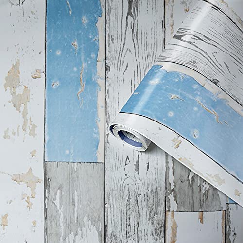 Livelynine 45CMx7M Wood Wallpaper Self-Adhesive Film Vintage Wallpaper Wood Look Wallpaper Vintage Shabby Chic PVC Decorative Film Self-Adhesive for Hallway Kitchen Furniture Walls Bedroom Living Room Country Style