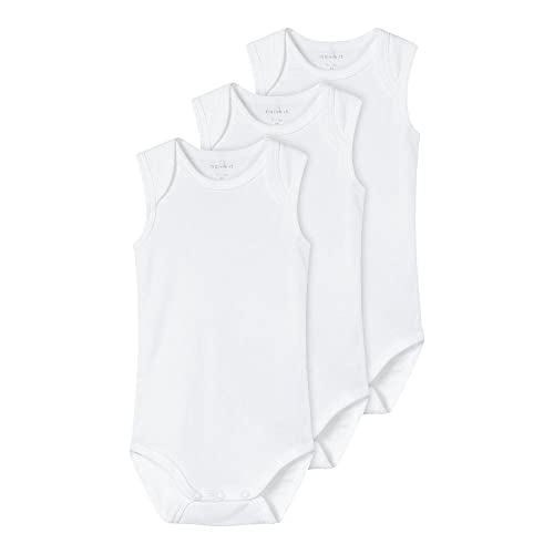 NAME IT Unisex baby NBNBODY 3P tank SOLID 3 NOOS pyjamas, ljus vit, 74