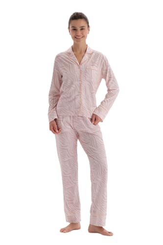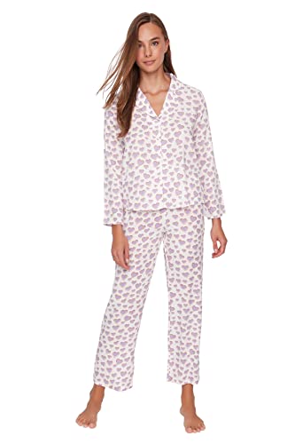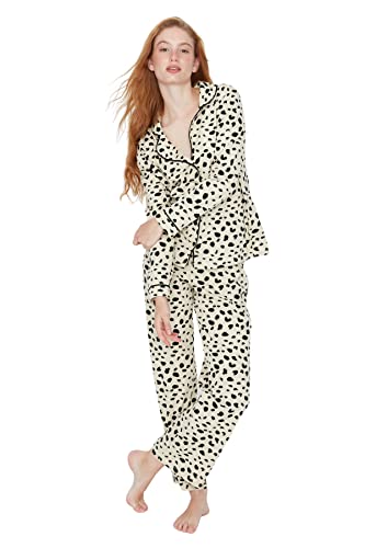 TRENDYOL Dam Animal Print Mitten Stickad Skjorta Byxor Pyjamas, Puder, L, Powder, L