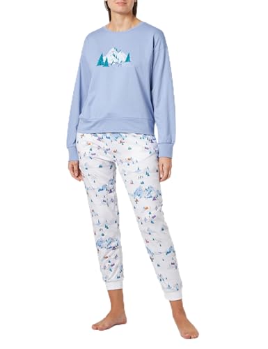 Dagi Dam långärmad tryck detaljerad rund hals T-shirt & byxor pyjamas-set, ljusblå, XL