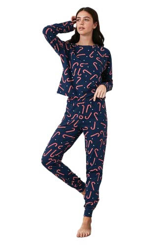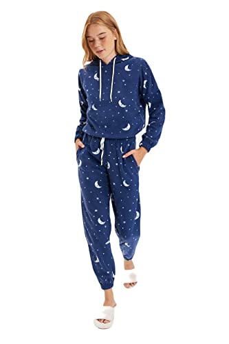 Trendyol Dam vanlig kok kalin stickad tröja-byxor pyjamas set, marinblå, S