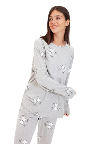 TRENDYOL Dam med slogan Mitten Stickad T-shirt Byxor Pyjamas, grå, XS, Gray, XS