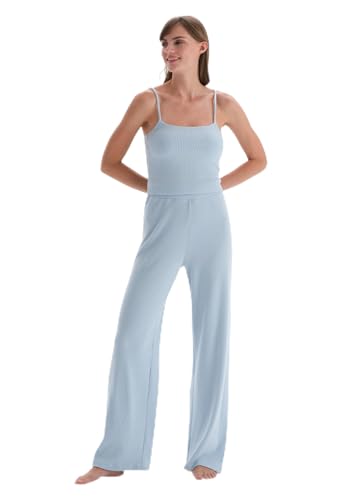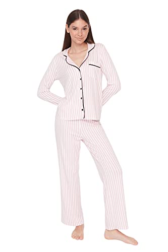 Trendyol Dam enkel stickad skjorta byxor pyjamas set, Pulver, XS