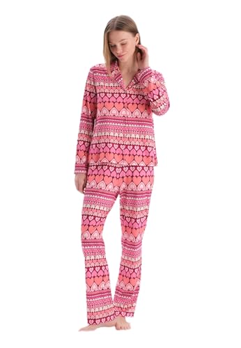 TRENDYOL Dam hjärta mitten tyg skjorta byxor pyjamas pyjamas set (2-pack), Flerfärgad, 42