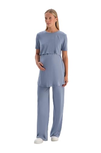 TRENDYOL Dam enfärgad mitten stickad t-shirt byxor pyjamas, marinblå, S, Navy Blue, S