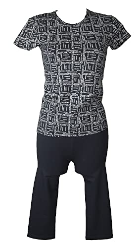 Emporio Armani Dam pyjamas sommar bomull t-shirt halvärm mössa byxor artikel 163139 163423 5P262, 13635 marin, S