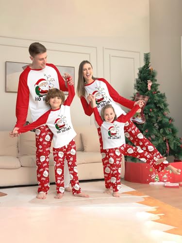 Irevial Jul familj pyjamas outfit nattkläder män kvinnor lång pyjamas set med julmotiv roliga nattkläder jul hemmadräkt, Barn-röd, XL