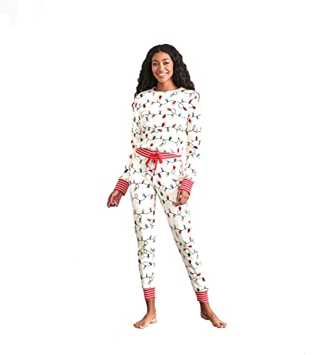 Hatley Holiday Lights Candy Stripes och tall familj pyjamas set, Glödande i mörkret semesterbelysning – pyjamasset för kvinnor, XS