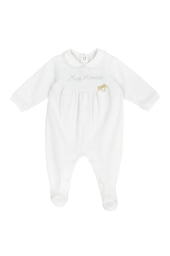 Chicco, Chenille sparkdräkt med fötter pyjamas för baby och småbarn unisex barn, Vit, 6 månader
