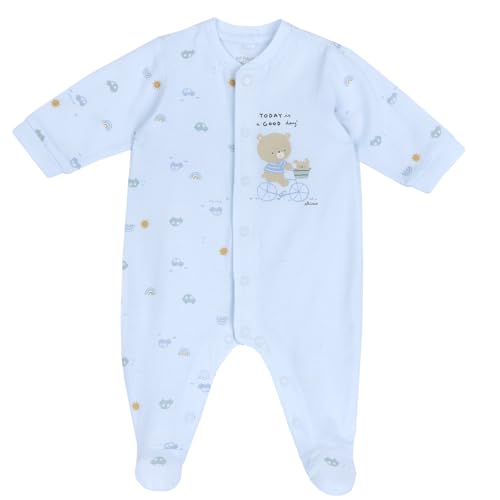Chicco Bomull Trikå Onesie med fötter Pyjamas för unisex barn och småbarn, Medelblå, 0 mesi