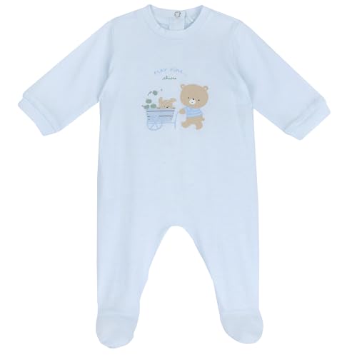 Chicco Chenille sparkdräkt med fötter pyjamas för pojkar och småbarn, Ljusblå, 0 mesi