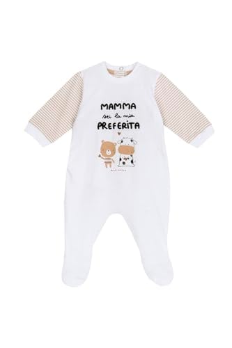 Chicco Bomull Trikå Onesie med fötter Pyjamas för unisex barn och småbarn, Naturlig medium, 12 mesi