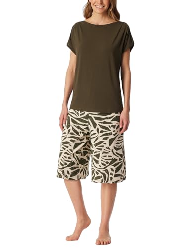 Schiesser 3/4 kortärmad pyjamas för kvinnor, modal-jersey - vald premium, Olivgrön, 42