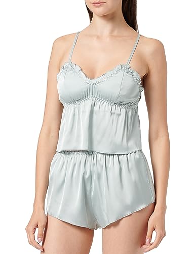 RSLOVE Dam V-ringad satin underkläder pyjamas set sexig cami och shorts set nattkläder, gRÖN, M
