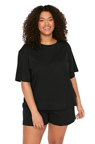 Trendyol Dam vanlig stickad T-shirt-shorts plus storlek pyjamas set pyjamas dam, svart, 3XL