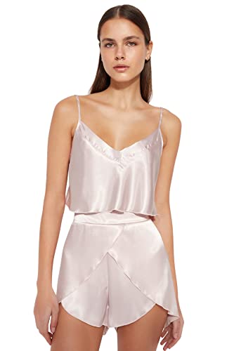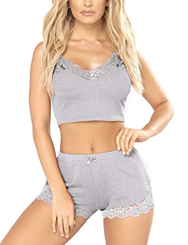 LEJAHAO Sexig pyjamas dam kort sommar pyjamas set satin spets ädel hemmadräkt nattkläder dampyjamas sovkläder med ärmlös linne och shorts negligé nattlinne för kvinnor flickor flicka kvinna, ROSA, S kort