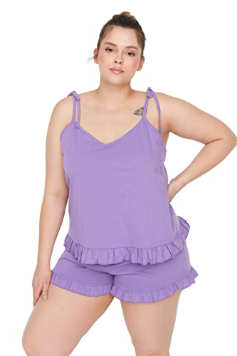 Trendyol Dam vanlig stickad camisole-shorts plus storlek pyjamas set pyjamas (2 st) dam, Lila, 4XL