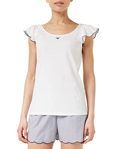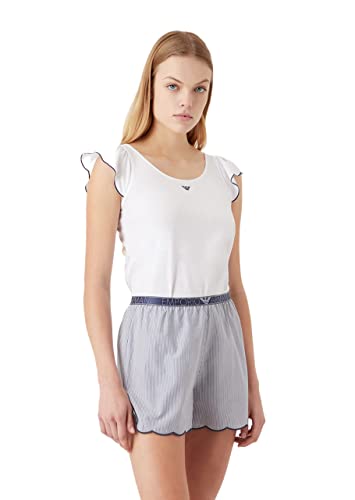 Emporio Armani Underkläder dam drömy poplin shorts pyjamas, denim/vita ränder, XL, Denim/vita ränder, XL
