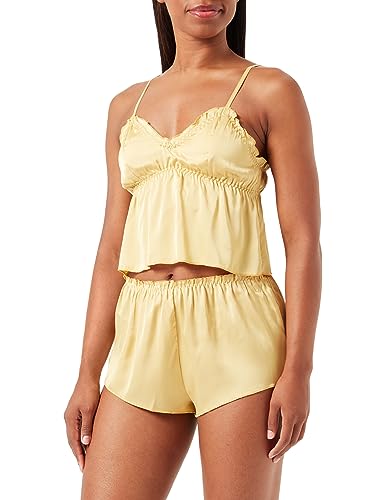 Clotth Dam sexig V-ringad pyjamas-set Ice Silk Ultra Short Open Umbilical Pyjamas klänning shorts set, Trä gul-l, L