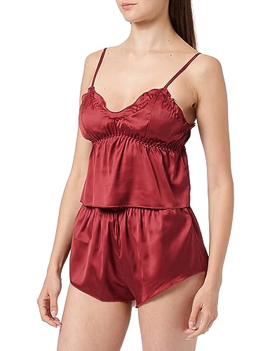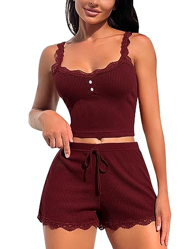 RSLOVE Dam pyjamas spets pyjamas set för kvinnor topp och shorts sexiga nattkläder, Vinrött, S