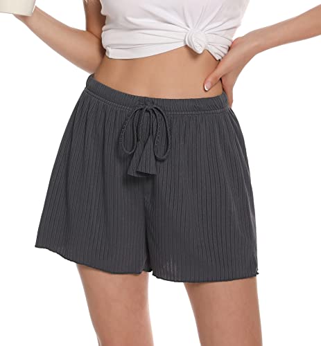 Vlazom Dam sommar shorts, pyjamas shorts för dam bomull med fickor kort pyjamas dam inomhus pyjamas leger nattshorts, A-mörkgrå, XXL