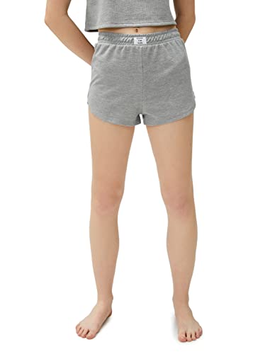 Koton Dam dag detalj elastisk midja pyjamas botten shorts, Gråmelerad (gram), M