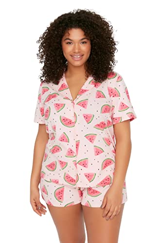 Trendyol Dam Enfärgad Vävd Camisole-Shorts Plus Size Pyjamas Set (paket med 7), Rosa, 48