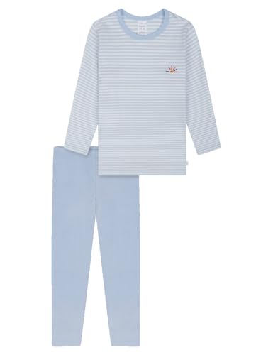 Schiesser pyjamas för pojkar set pyjamas lång – 100% ekologisk bomull – storlek 92 till 140, Ljusblå_181856, 92 cm
