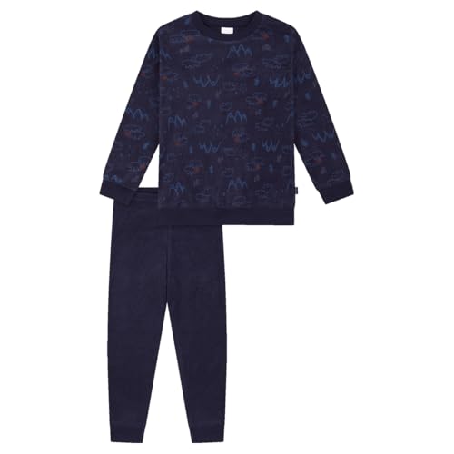 Schiesser pyjamas för pojkar set pyjamas varma kvaliteter frotté – fleece – interlock – storlek 92 till 140, Mörkblå_181861, 104