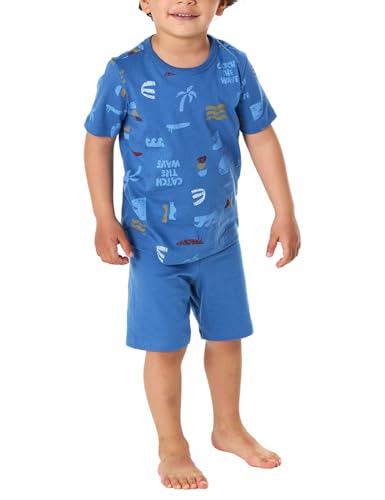 Schiesser pyjamas för pojkar kort pyjamas – 100% ekologisk bomull – storlek 92 till 140, Atlantisk blå, 92