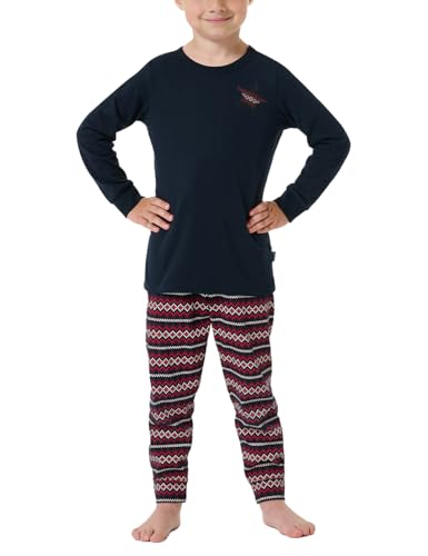 Schiesser pyjamas för pojkar set pyjamas lång – 100% ekologisk bomull – storlek 92 till 140, Mörkblå_181860, 92 cm