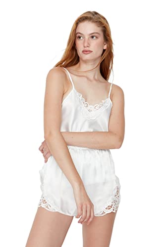 Trendyol Vanligt spetsarbete/nät/nät detaljerat tunt vävt linne - shorts pyjamasset, Ecru, XS