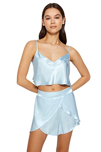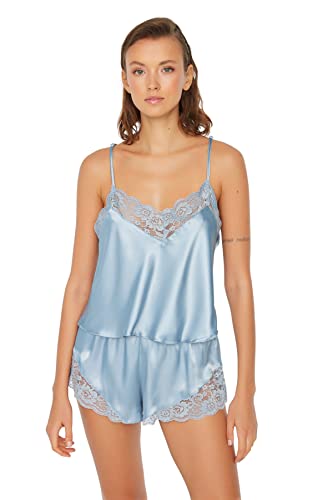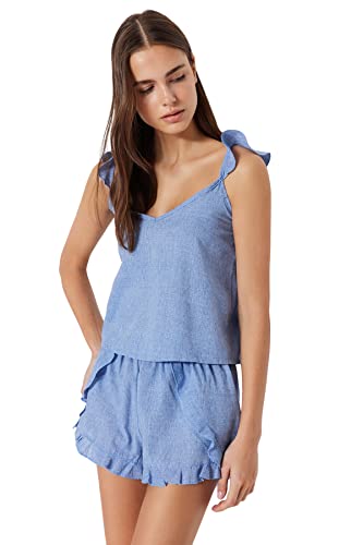 Trendyol Dam enkla vävda Camisole-Shorts Pyjamasset, Blå, 36, BLÅ, 62