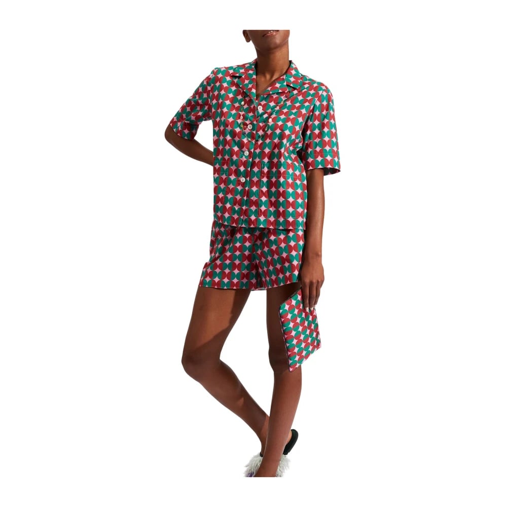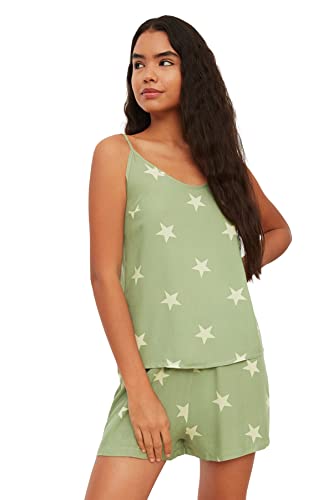 Trendyol Dam geometriskt mönster vävd linne - shorts pyjamasset, gRÖN, 62