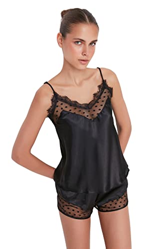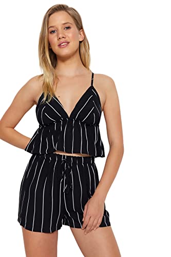 Trendyol Dam enkla vävda Camisole-Shorts Pyjamasset, Svart, 38, Svart, 64