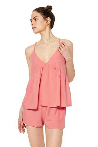 Trendyol Dam vanligt vävd linne-shorts pyjamasset, torkad ros, 36, Torkad ros, 62