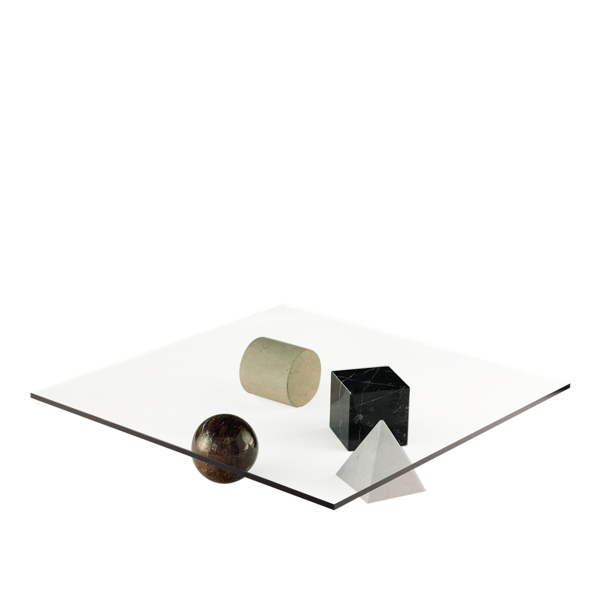 Martinelli Luce - Metafora Coffee Table, Pyramid: Carrara, Cube: Marquina, Cylinder: Travertine, Sphere: Rasotica - Soffbord - Lella & Massimo Vignelli - Vit - Glas/Sten