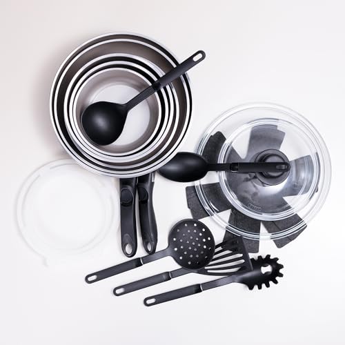 Kamberg - 12 st köksredskap - Induktion - tillverkat i Frankrike - PFOA/PFAS - med 2 Pyrex®-lock Ø 18–20 cm