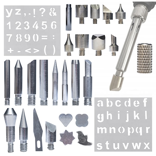 Pyrografi Set 30 Delar – 27 Spetsar, Adapter 900M, 2 Schabloner | M4 Gänga | Ersättningsdel för Rosfix, Yihua, WEP